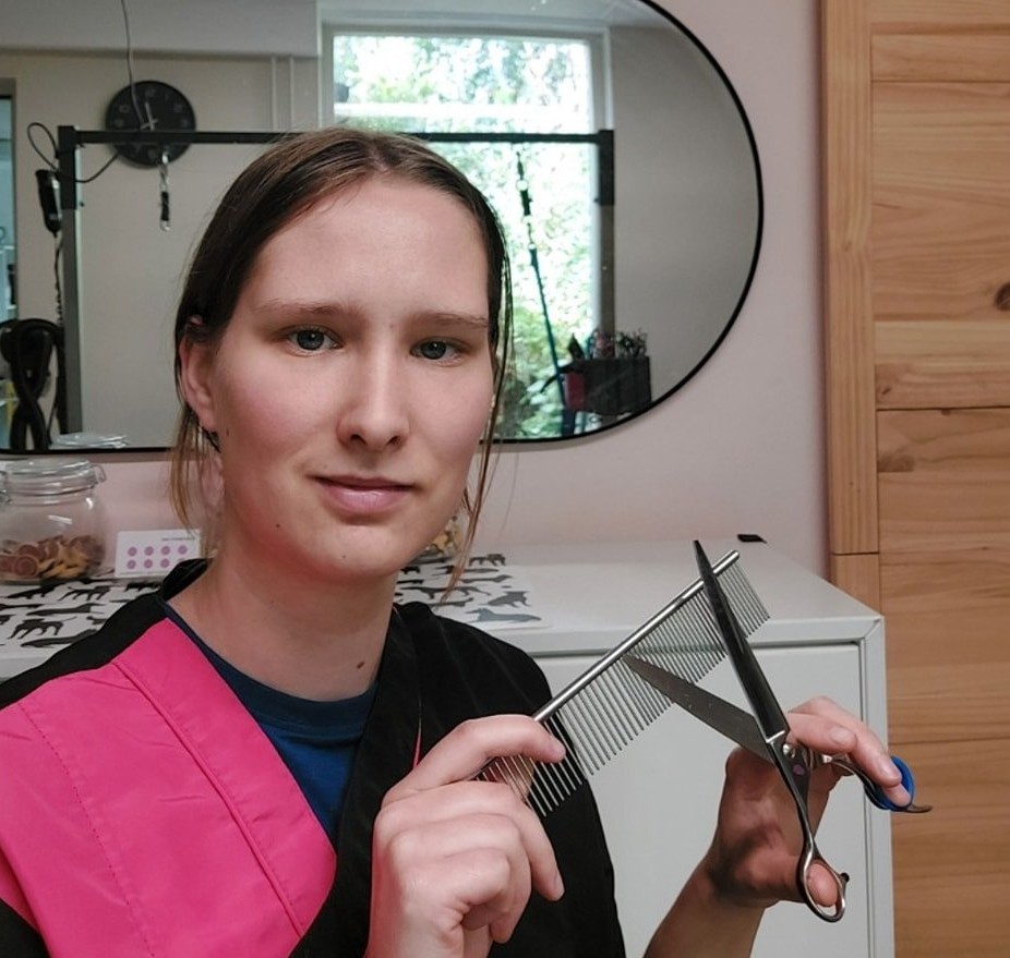 In 2020 heb ik de opleiding Dierverzorging behaald aan het Scalda Groen College. Na mijn studie ben ik op zoek gegaan naar een baan in de dierverzorging en kwam ik steeds weer terug bij het vak trimster. Een baan waar ik dieren kan helpen en verzorgen, precies wat ik zocht.